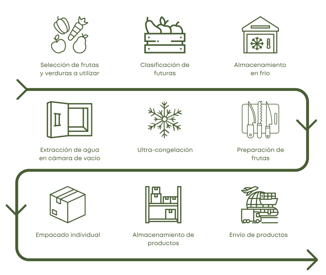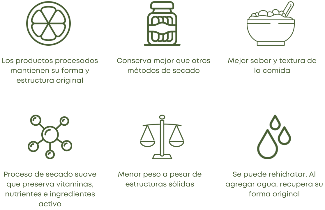 3. Producto final estable: Se obtiene un alimento seco, liviano y con una vida útil prolongada, pero manteniendo su perfil nutricional casi intacto.